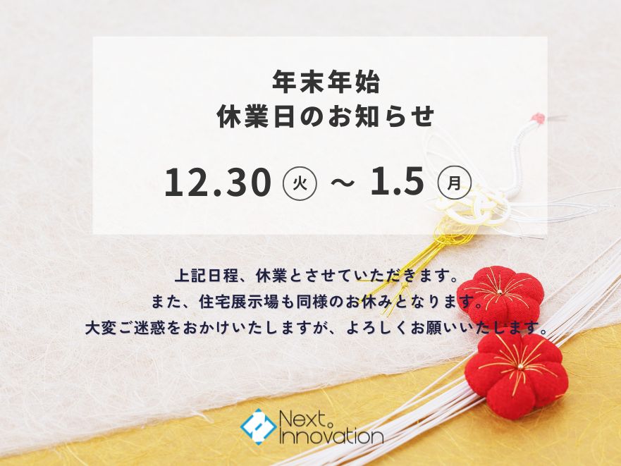 年末年始休業日のお知らせ